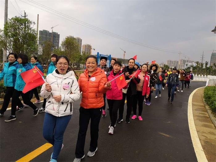 2018年3月8日上午,“巾幗心向黨·踏上新征程”市直機關(guān)女干部“環(huán)湖健身走”活動(dòng)在愛(ài)蓮湖公園舉行,義芳副市長(cháng)參加該項活動(dòng),并作了講話(huà),市委副書(shū)記鐘得志宣布活動(dòng)開(kāi)始,來(lái)自市直各單位、國資委系統以及賀州學(xué)院等單位共550名女職工從市文化中心前廣場(chǎng)出發(fā),進(jìn)行全程約3.8公里的環(huán)湖健步走活動(dòng)。我集團公司楊麗霞等10名女職工參加了該項活動(dòng),全面展示了我集團公司女職工良好的精神風(fēng)貌。