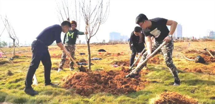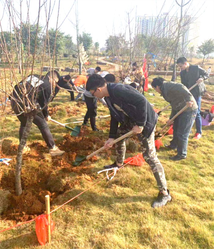 在活動(dòng)負責人進(jìn)行任務(wù)布置、流程講解后,城投集團團委的青年們便開(kāi)始了有序的植樹(shù)活動(dòng)。大家分工明確、齊心協(xié)力,揮舞鐵鍬翻新土,扶植新苗列成行,呈現出一派熱火朝天的勞動(dòng)場(chǎng)面。